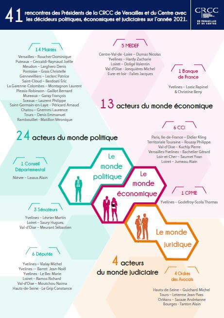 41 rencontres des Présidents de la CRCC de Versailles et du Centre avec les décideurs politiques, économiques et judiciaires sur l’année 2021.